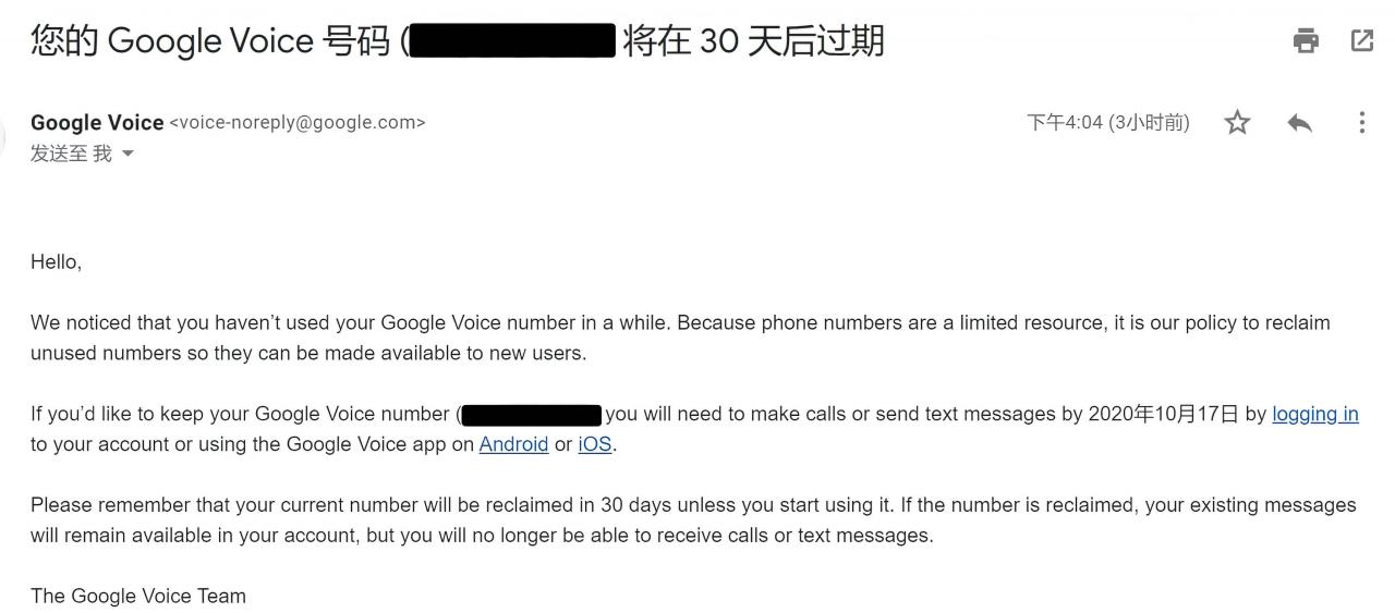 注:如果在 3 个月内没有拨打或接听电话,或发送或打开短信,谷歌会收回号码。不会收回永久号码。