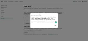 3、API Key 创建成功。复制好这个 Key 接下来会用到。点击 OK 后,Key 不会再完整显示。只能删了重新生成 Key!